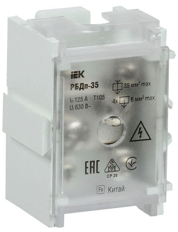 - Блок распределительный проходной РБДп-35 125/50А DIN 1х35-4х6кв.мм IEK YRB30-1-125