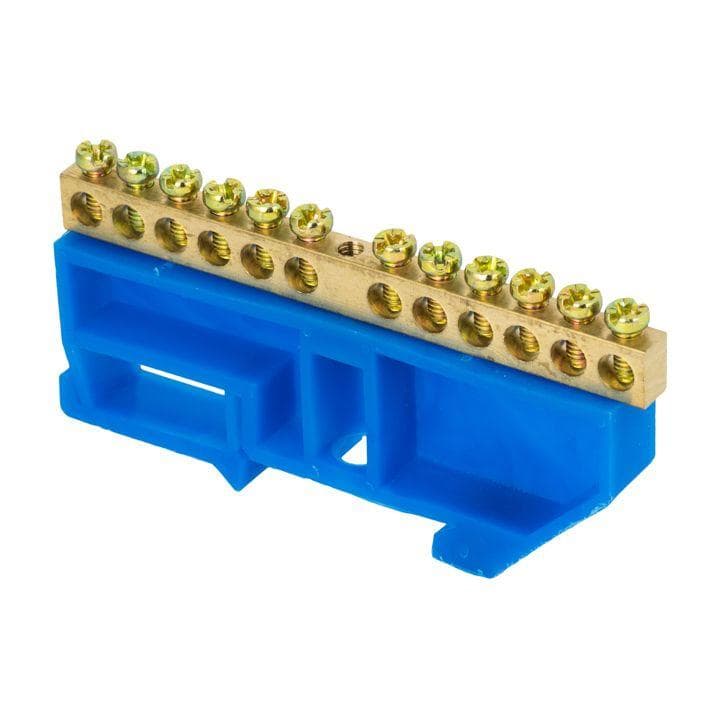 - Шина нулевая N 6х9 12 отвер. латунь син. изолятор на DIN-рейку PROxima EKF sn0-63-12-d