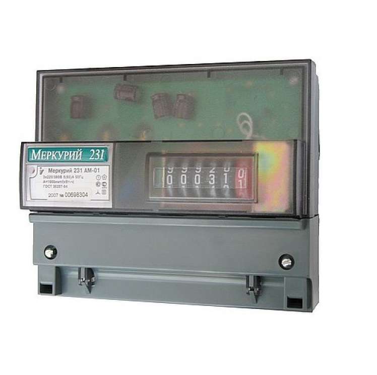 - Счетчик Меркурий 231 AM-01 3ф 5-60А класс точн. 1.0 1 тариф. импульс. вых. на DIN-рейку мех. ОУ Инкотекс 00000032430