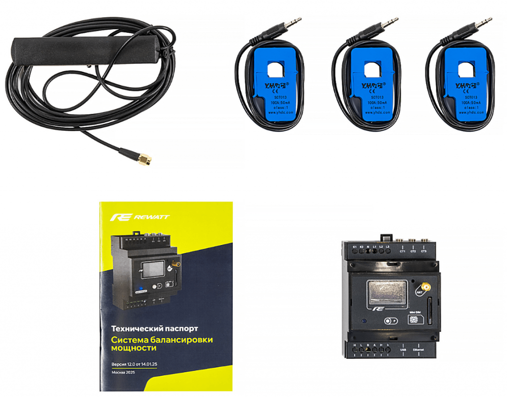 В основе лежит «железо» - трансформаторные токовые кольца (крепятся на подводящие фазные провода для считывания уровня протекающего тока), собственно балансировочный блок (обрабатывающий сигнал с токовых колец и передающий команды в зарядную станцию или, если станций не одна, в балансировочный шкаф).